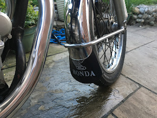 I've also done some other routine servicing stuff - stripped, cleaned and greased the front brake caliper holder, which has a habit of seizing up but was nice and free; replaced the brake fluid when I bled the brake after fitting the new master cylinder; adjusted the clutch; fitted a new horn and lubed/adjusted the rear chain. The general feel is that Gloria has been really nicely cared for over the years. I'm saying that with fingers crossed for when I ultimately remove the head and check the camshaft bearing!